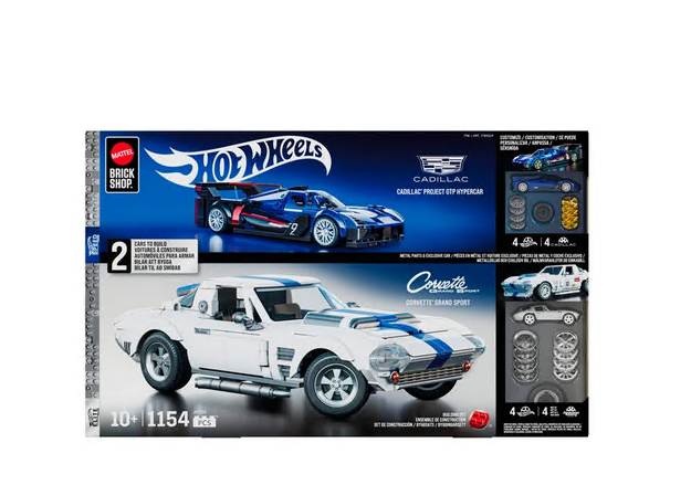 Recommended Age: 10+Product DetailsBuckle up for the buildable 1:32 scale Cadillac Project GTP Hypercar and the 1:16 scale Corvette Grand Sport by Mattel Brick Shop. Each car in this set includes decals for customization, 2 sets of wheel covers, a metal signature plate, plus an exclusive matching metal car. Collect more from the Speed Series and Elite Series and build your collection!
